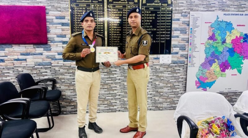 Samastipur : एसपी अरविंद प्रताप सिंह ने हरियाणा गुड़गांव में आयोजित प्रोफेशनल नेशनल बॉक्सिंग चैंपियनशिप प्रतियोगिता में शानदार प्रदर्शन कर सिल्वर मेडल जीतने वाले समस्तीपुर जिला बल के सिपाही राजन कुमार को सम्मानित किया है। एसपी अरविंद प्रताप सिंह ने कहा कि सिपाही राजन कुमार ने समस्तीपुर जिला पुलिस सहित बिहार पुलिस को गौरवान्वित किया है। बता दें कि वह भागलपुर जिले के नयाचक मखना निवासी धुरी यादव के पुत्र हैं। वर्तमान में बिहार पुलिस में सिपाही के पद पर कार्यरत हैं और अभी समस्तीपुर जिला पुलिस बल में पोस्टेड हैं। उन्होंने अपनी इस सफलता का श्रेय अपने माता-पिता और गुरु को समर्पित किया है।