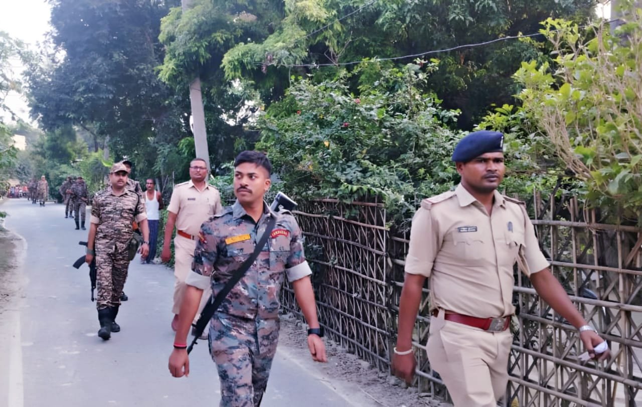 सीआईएसएफ व सीआरपीएफ के साथ मिलकर मुफ्फसिल पुलिस ने निकाला फ्लैग मार्च, की छापेमारी