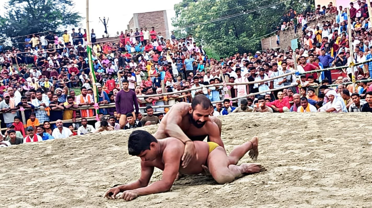 दंगल कुश्ती प्रतियोगिता के पहले दिन महिला और पुरुष पहलवानों ने लगाया दांव